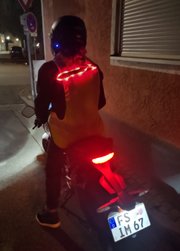 Zur Erhöhung der Sicherheit unserer Fahrschülerinnen und -schüler setzen wir Helite-Airbagwesten in unserer Ausbildung ein. Diese blasen sich mittels einer CO2-Patrone in ca. 80 ms auf, falls der Fahrer außerplanmäßig vom Motorrad absteigt.